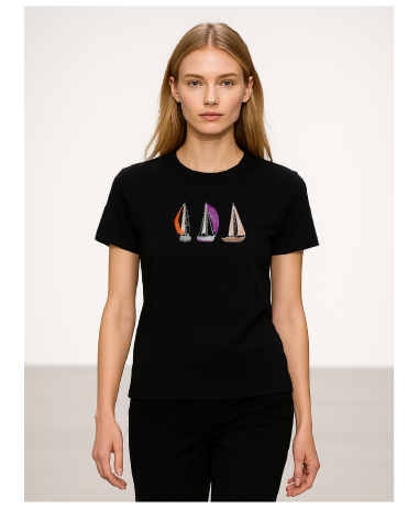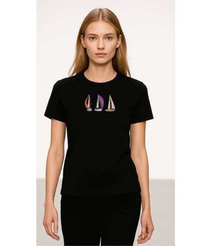 Yelken temalı siyah tişört