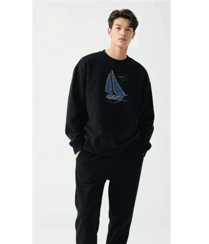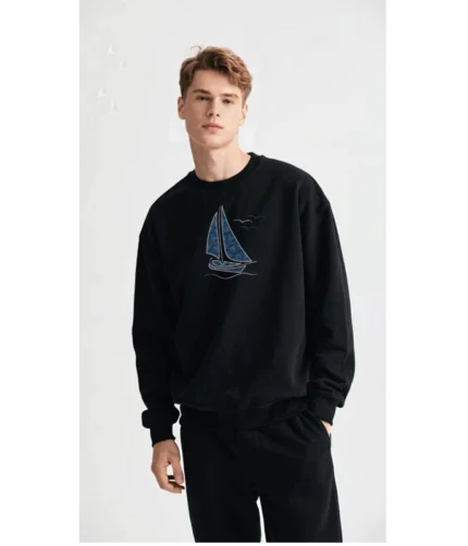 Siyah mavi yelken temalı sweatshirt